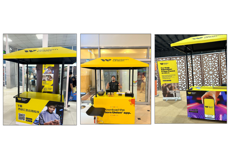 We have been doing the Western Union® Kiosk – a brand activation activity through Kiosks here in the UAE in various malls - Safeer Mall, Day to Day Center, Al Ain Madina. Ajman China Mall, Emarats Markets, Grand Mall, Lucky Center, CuCa University, Bath-Spa University, Labor Camps in Dubai/Ajman and various other locations in UAE.